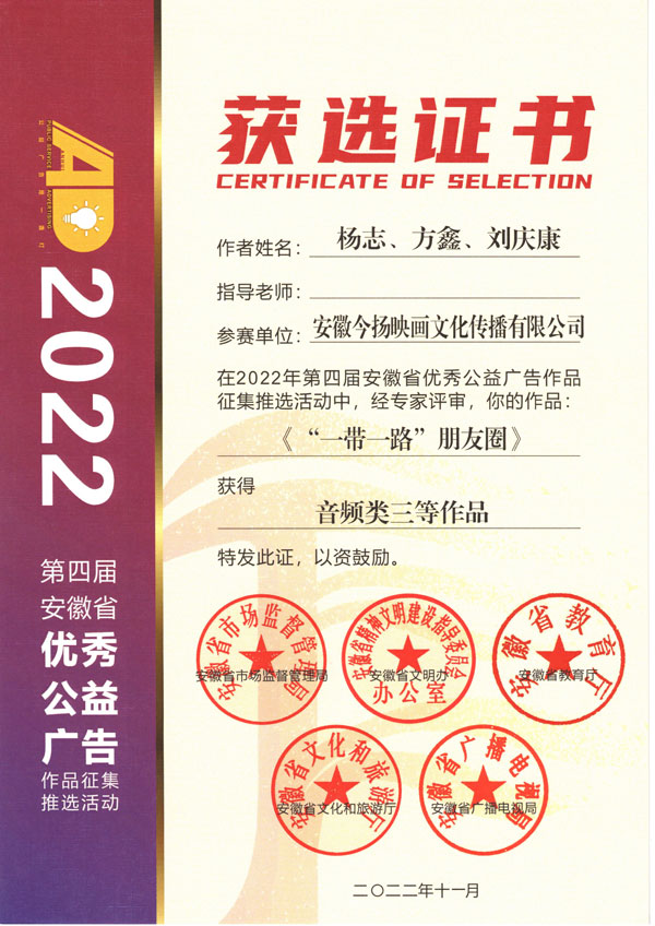安徽今扬映画文化传播有限公司是一家以品牌形象策划与影视制作为主的全流程影视公司。一直致力于城市宣传片、企业宣传(广告)片、政府形象片、纪录片、栏目包装、微电影、活动执行等制作。拥有着经验丰富的核心团队,行业先进的设备,不断吸收更多专业技术人才,不断提高团队的技术实力,只为客户提供更好更专业的影视作品,提供一站式的优质服务。